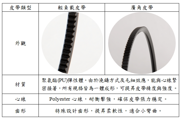 材質均勻,皮帶厚度與裁切寬度穩定,機構運轉平順。 |